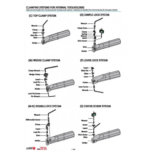 - Cán dao tiện móc lỗ Palbit với 6 loại khác nhau, có thể lắp đặt các mảnh dao CCMT, CCGT, DCMT,…ứng dụng tiện mặt, tiện biên dạng.